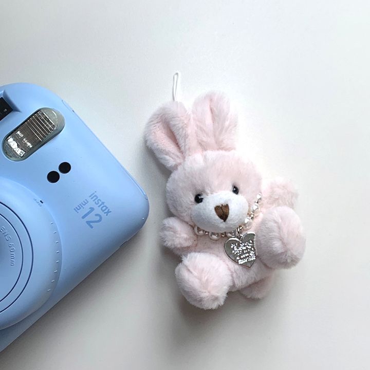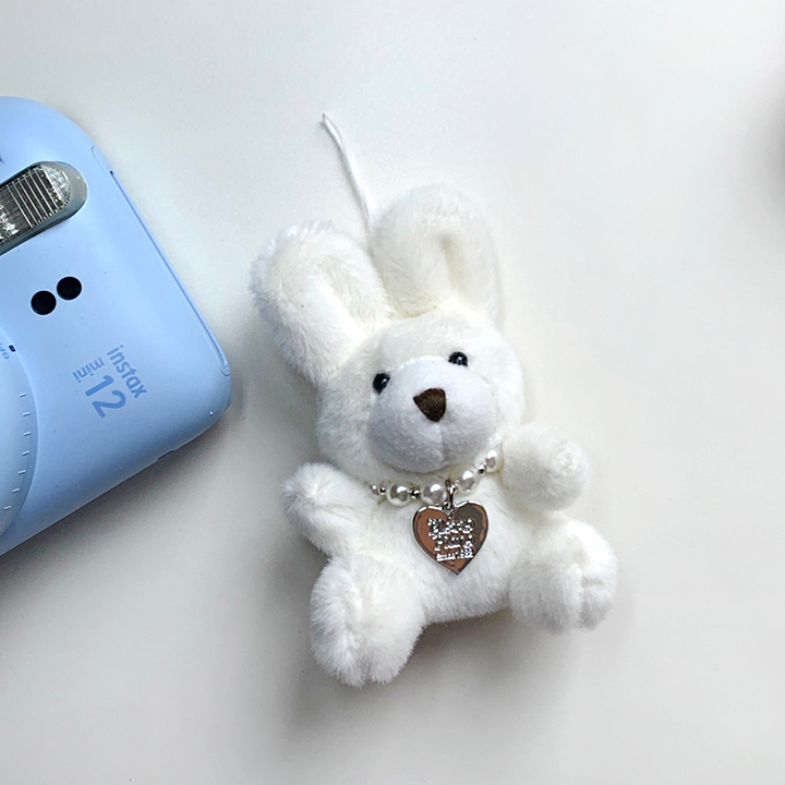 하트 목걸이를 착용한 사랑스러운 토끼 키링