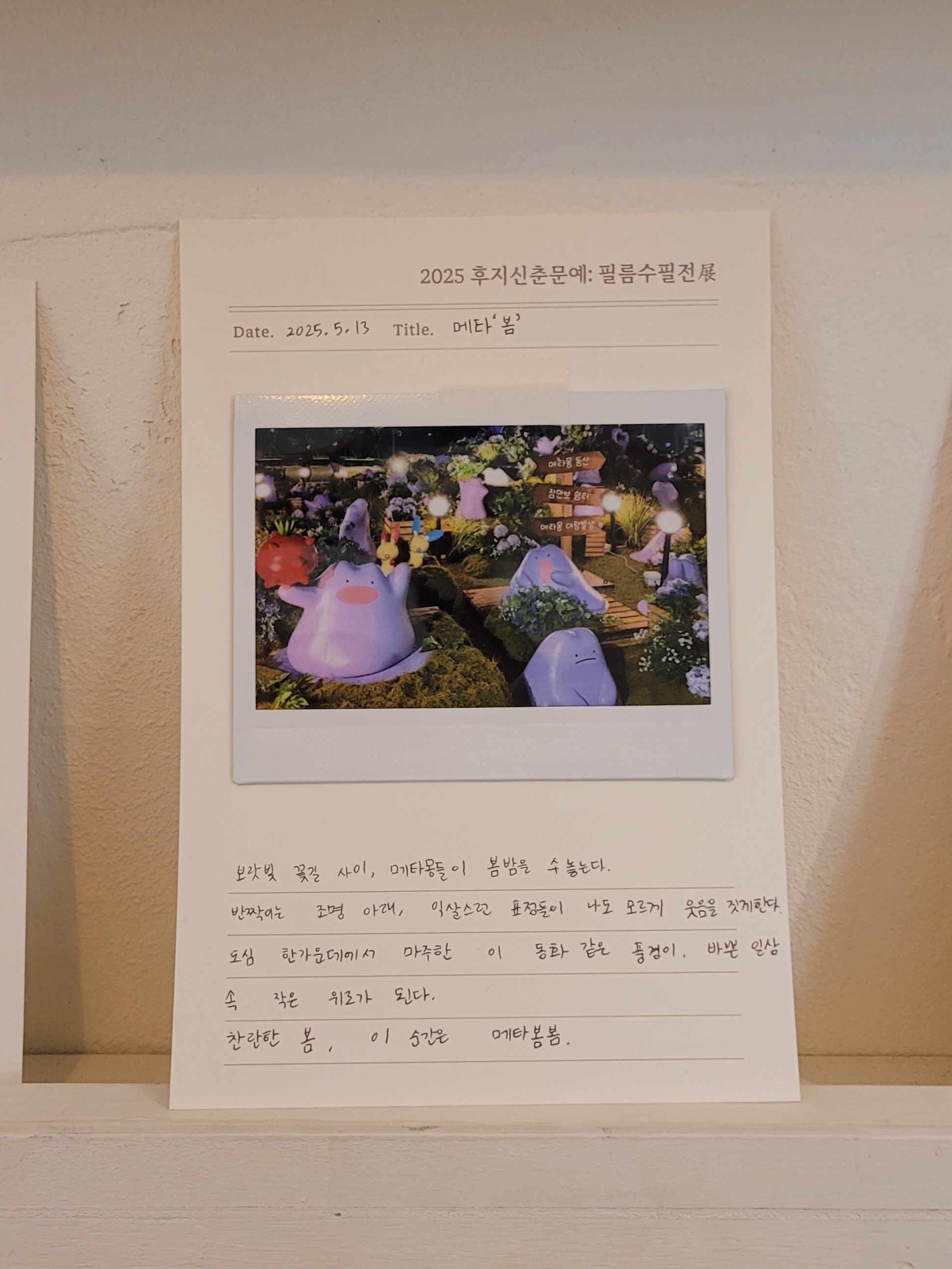 필름수필전 주제가 찬란한 봄처럼 소중한 존재, 그리고 머물고 싶은 풍경이었는데 결국 그 순간에 함께 했던 소중한 무수한 기억중 하나를 골라 뽑게 되는것 같아요.