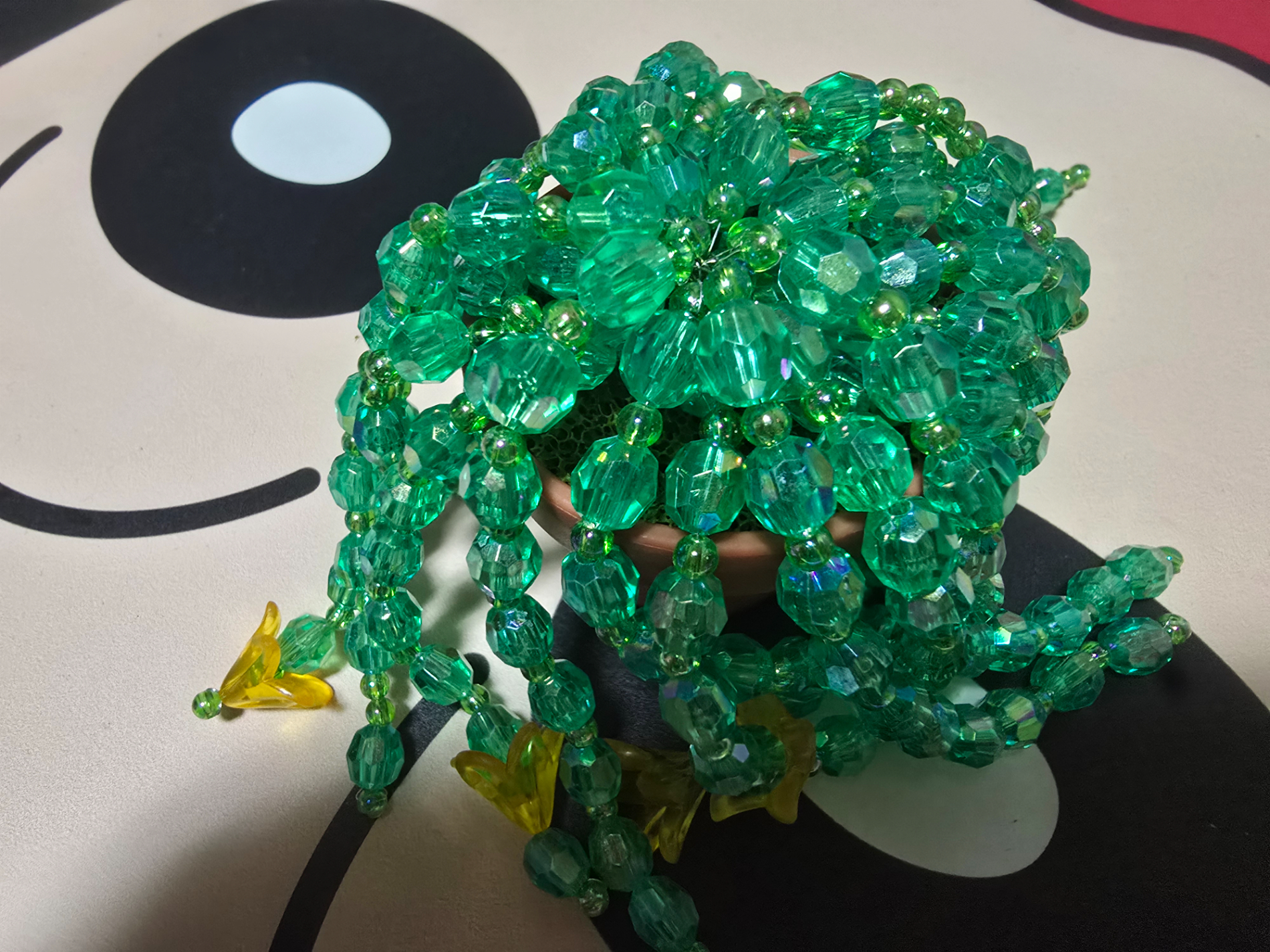 비즈는 작은 비즈, 큰 비즈 그리고 꽃 모양이 있었는데요. 처음에는 작은 비즈, 큰 비즈 하나씩 규칙적으로 끼워야겠다는 생각이 고정관념처럼 박혀 있었는데 하나 둘 만들다 보니 작은 비즈가 부족할 수 있을 거 같아서 그 때부터 불규칙하게 만들기 시작했고요. 그러다 보니 저만의 독특한 비즈식물이 나올 거 같다는 생각에 모양이 더 기대가 되었네요.