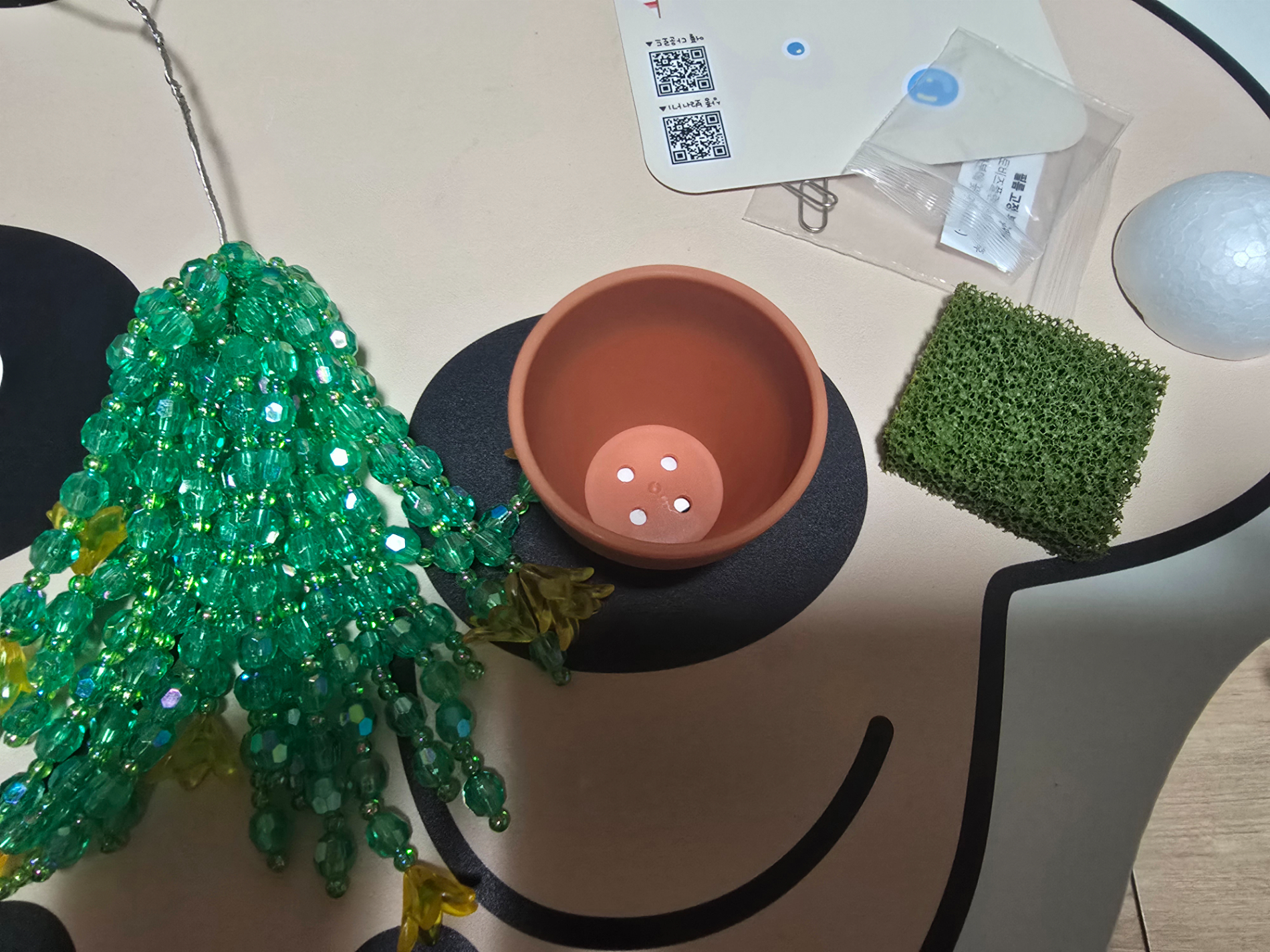 그런 경우는 드물겠지만 재료가 모두 있는지 확인하고 시작하는게 좋을 거 같은데요. 처음에는 비즈 양도 많고 설명서도 읽었는데 이해가 안되어서 막막했어요. 만드는 영상을 보면서 만드니 좀 더 쉬워지고 같이 만드는 느낌이 들어서 재밌었네요.